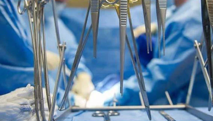 پشاور میں حیات آباد انسٹیٹیوٹ آف کڈنی ڈیزیزکے آپریشن تھیٹر میں سرجری کے دوران مریض پر لال...