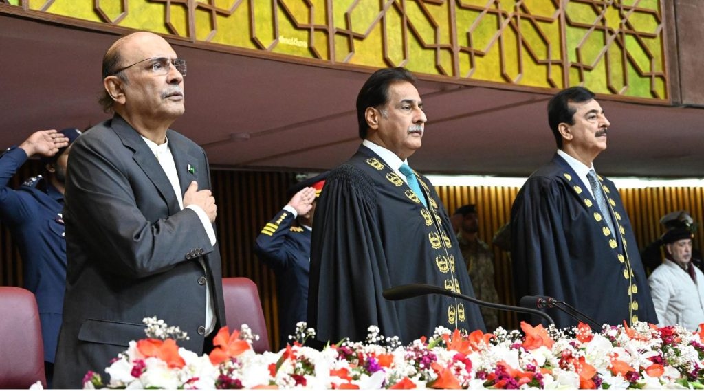 بعد ازاں صدر مملکت آصف علی زرداری نے اپنے خطاب کے دوران شہید رہبر انقلاب اسلامی ایران کا خصوصی تذکرہ کرتے ہوئے کہاکہ ہم جاری مذاکرات کےدوران ایران کے خلاف جنگ کی شدید مذمت کرتے ہیں ، ہم نے اپنے برادر ملک کی خودمختاری اور علاقائی سالمیت کے لیے اپنی حمایت کا اعادہ کیا ہے، صدر آصف علی زرداری کا پارلیمنٹ کے مشترکہ اجلاس سے خطاب میں رہبر انقلاب اسلامی کی شہادت کا تذکرہ کرتے ہوئے ان کی بلندی درجات کے کلمات بھی ادا کئے۔