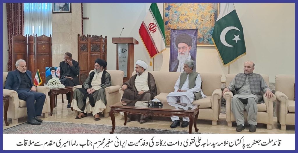 دوسری جانب قائد ملت جعفریہ پاکستان علامہ سید ساجد علی نقوی نے نے شیعہ علماء کونسل کے اعلیٰ سطحی وفد کے ہمراہ ایرانی سفیر سے اظہار تعزیت کی علامہ عارف واحدی اور زاہد علی اخونزادہ بھی علامہ ساجد نقوی کے ہمراہ تھے، علامہ ساجد نقوی کا کہنا ہےکہ سامراجی و صہیونی قوتیں آیت اللہ العظمی سید علی خامنہ ای کی مدبرانہ قیادت سے خوفزدہ تھی